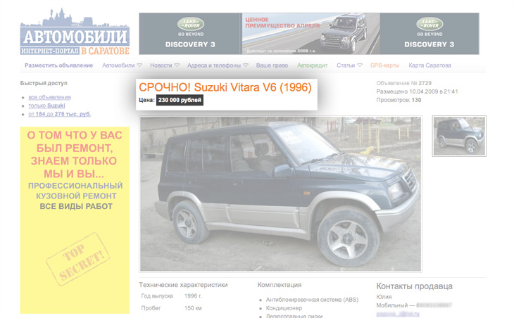 Объявление будет выделено на 7 дней. Каждое последущее SMS-сообщение продляет выделение объявления ещё на 7 дней. 10-15 дней обычно достаточно, чтобы привлечь внимание максимального числа потенциальных покупателей на ваш автомобиль.