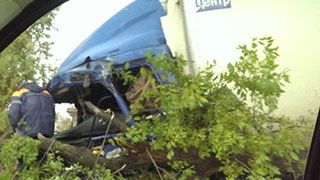 Судя по фотографиям, кабина большегруза получила серьезные повреждения, в том числе полностью разбито лобовое стекло. Рядом лежат поваленные в результате удара деревья.